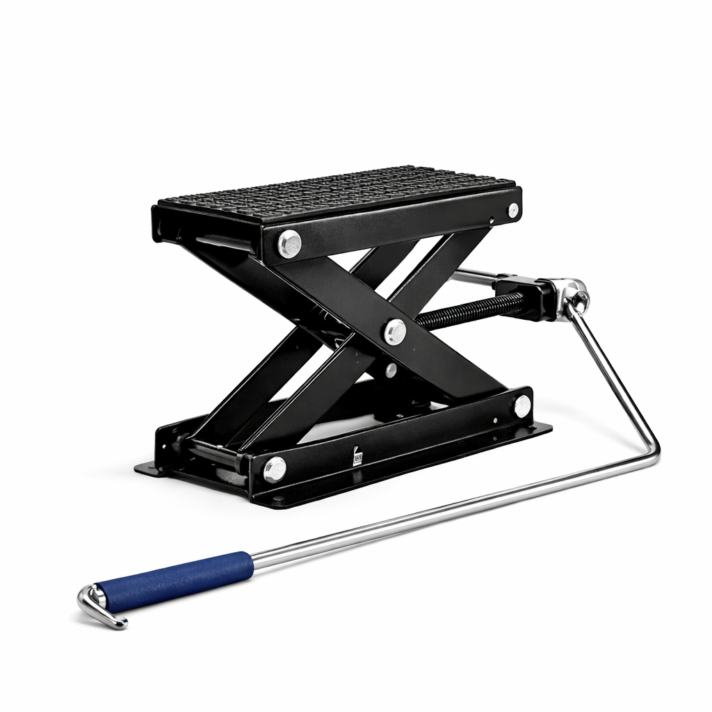 Le cric ciseaux moto permet de lever une moto en toute simplicité pour effectuer différentes opérations d’entretien dans de meilleures conditions. Il facilite notamment le nettoyage, les réglages, la maintenance ou le stationnement prolongé de la machine.